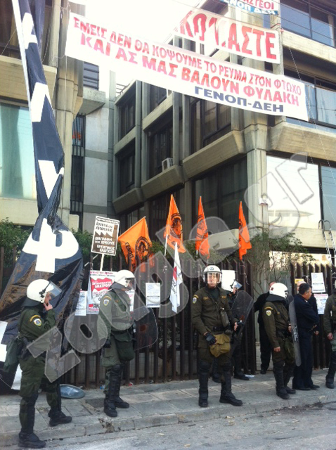 Ο πρόεδρος της ΓΕΝΟΠ – ΔΕΗ Νίκος Φωτόπουλος, λίγο πριν από τη σύλληψή του, κάλεσε τους ανέργους και τους συνταξιούχους να πάνε στο κτήριο και τόνισε ότι ο αγώνας θα συνεχιστεί έως το τέλος. «Αυτόν τον νόμο θα τον ακυρώσουμε στην πράξη» είπε χαρακτηριστικά.