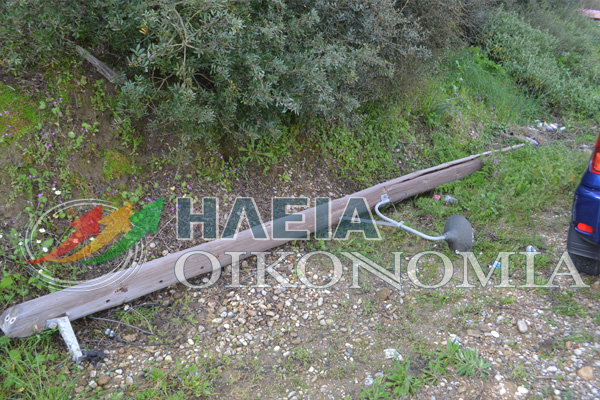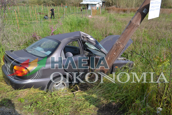 Σφοδρή ήταν η πρόσκρουση Ι.Χ. σε κολόνα φωτισμού νωρίς το πρωί της Κυριακής στον επαρχιακό δρόμο Πύργου-Αμπελώνα στην Ηλεία.