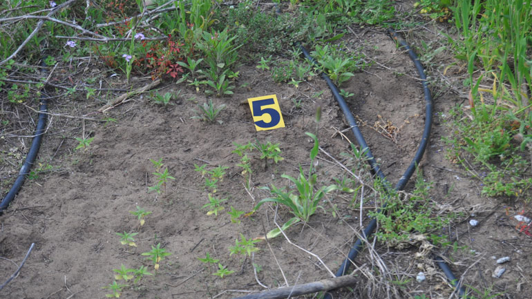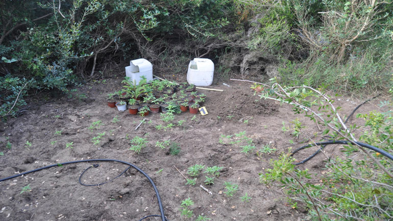 Για την καλλιέργεια των φυτών, ο δράστης είχε συνδέσει ένα πλήρες, αυτοσχέδιο δίκτυο ποτίσματος, με εξωτερική βρύση της οικίας του, ενώ μέσα σε ειδικά διαμορφωμένο χώρο, σε δασική έκταση, κοντά στο σπίτι του, καλλιεργούσε 64 φυτά κάνναβης μέσα σε γλάστρες.