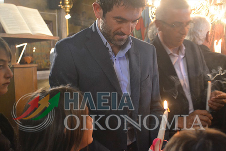 Ο φακός τους Iliaoikonomia.gr τον συνάντησε στην εκκλησία του Αμπελώνα την στιγμή που λάμβανε το Άγιο Φως για να το δώσει στα παιδιά του.