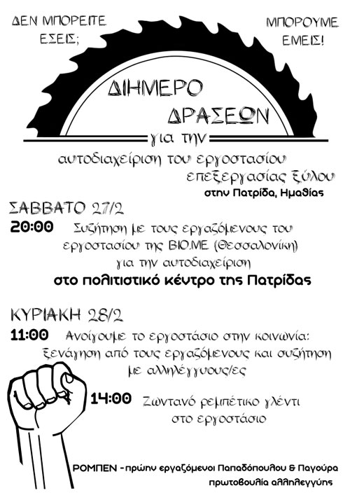 Οι πρώην εργαζόμενοι της εταιρείας ξυλείας «Παπαδόπουλος-Παγούρας» εξέδωσαν ανακοίνωση για το εγχείρημά τους: