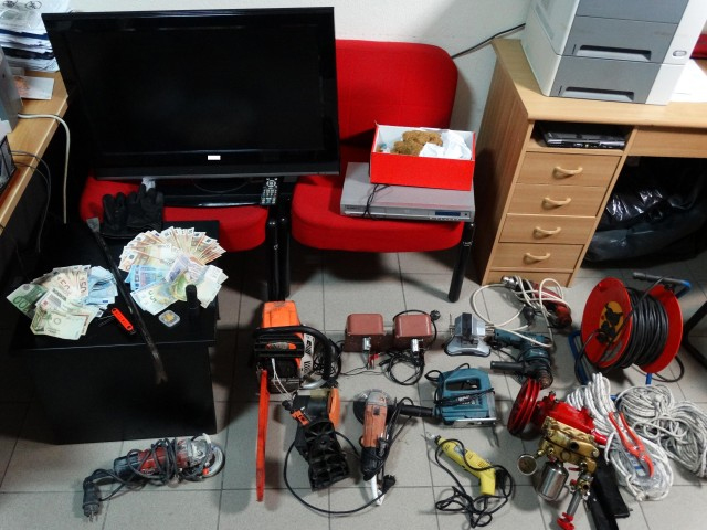 • αφαιρεθέντα εργαλεία, ηλεκτρικές και ηλεκτρονικές συσκευές, είδη ένδυσης και υπόδησης, φιάλες αλκοολούχων ποτών και άλλα αντικείμενα,