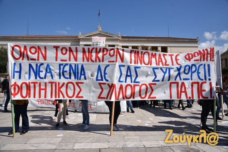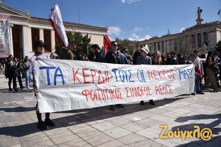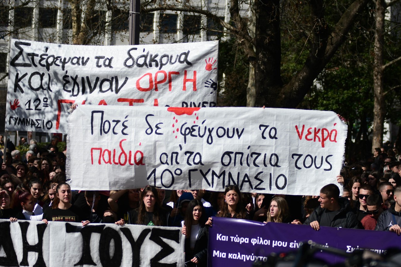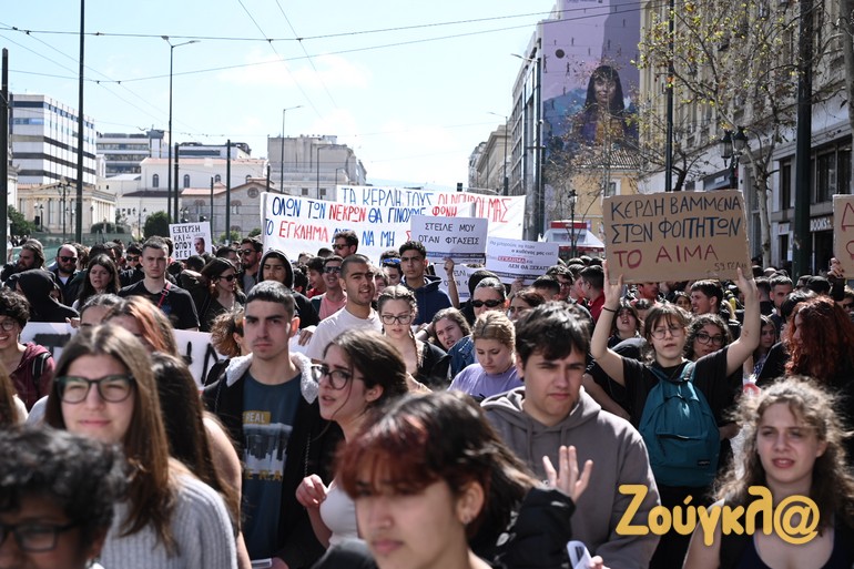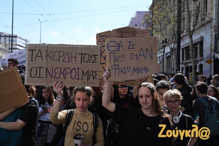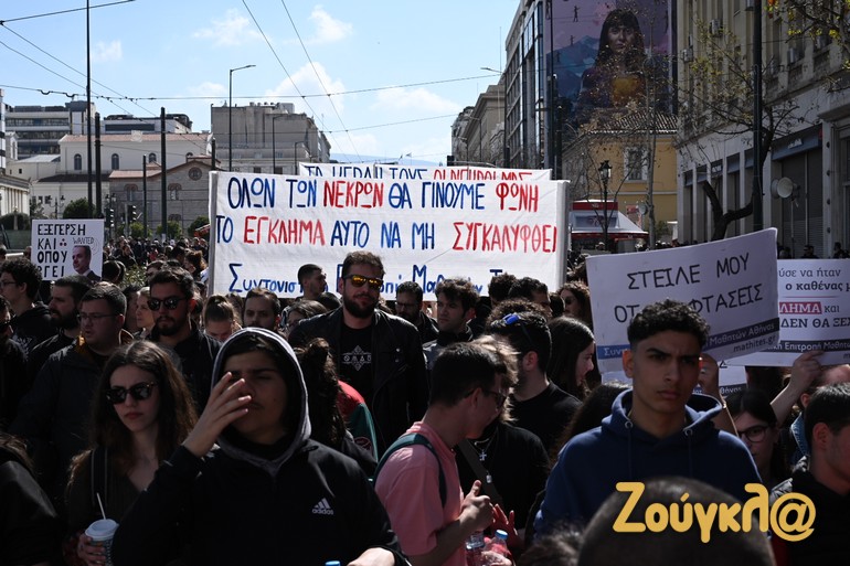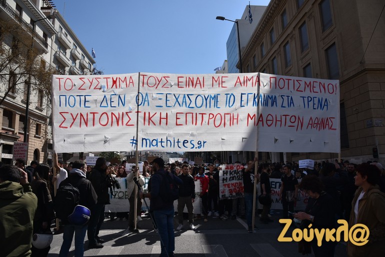 «Στείλε όταν φτάσεις», «Δεν έφτασε ποτέ», «Εκδίκηση θα πάρουμε για σένανε μικρέ», «Κέρδη βαμμένα στων φοιτητών το αίμα», «Το έγκλημα αυτό δεν θα ξεχαστεί όλων των νεκρών θα γίνουμε φωνή», είναι μερικά από τα συνθήματα που λένε οι διαδηλωτές.