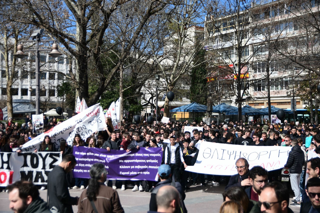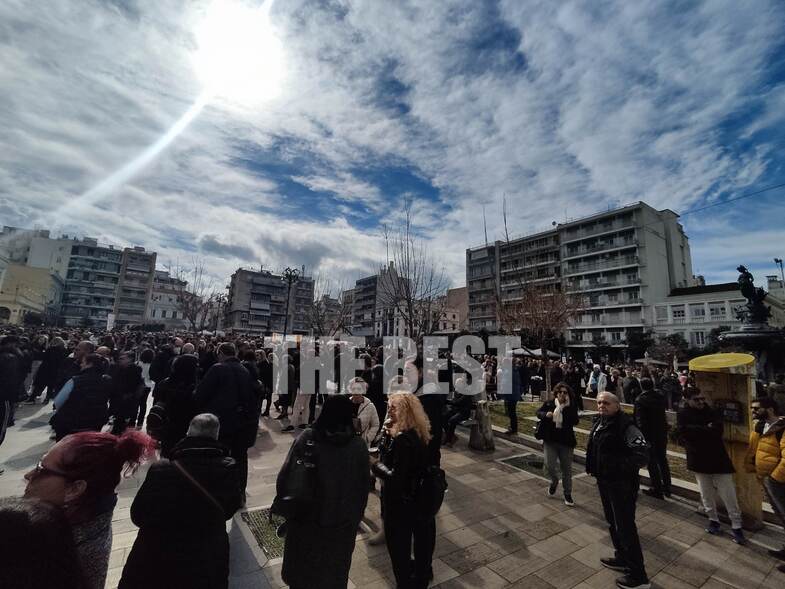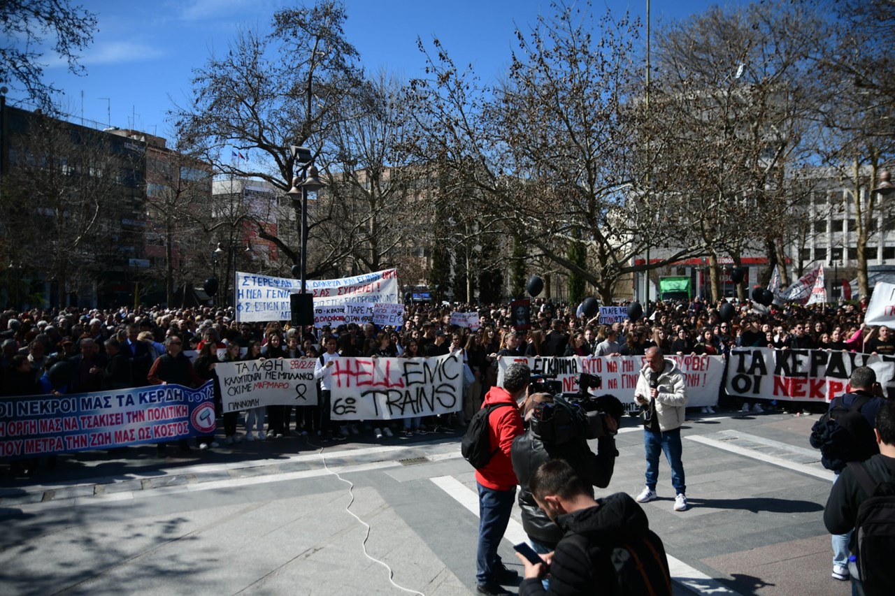 Τεράστιο πλήθος συγκεντρώθηκε στην Κεντρική Πλατεία της Λάρισας σε μια από τις μεγαλύτερες κινητοποιήσεις των τελευταίων ετών.