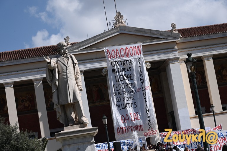 Την ίδια ώρα, υπό κατάληψη βρίσκεται η Πρυτανεία του ΕΚΠΑ. Νωρίτερα τα επεισόδια είχαν επεκταθεί στα Προπύλαια του Πανεπιστημίου.