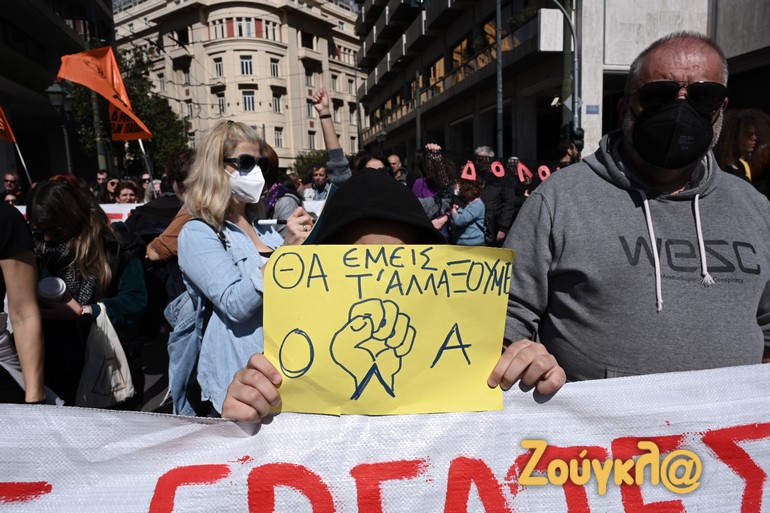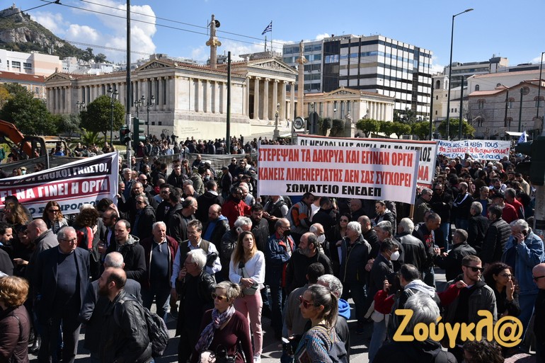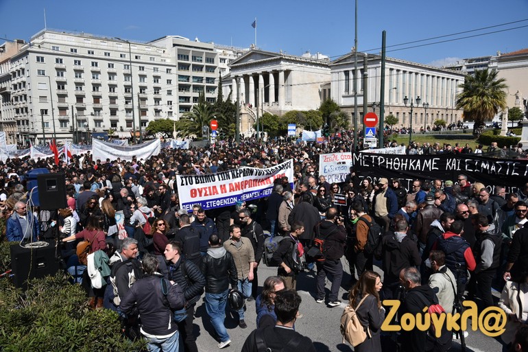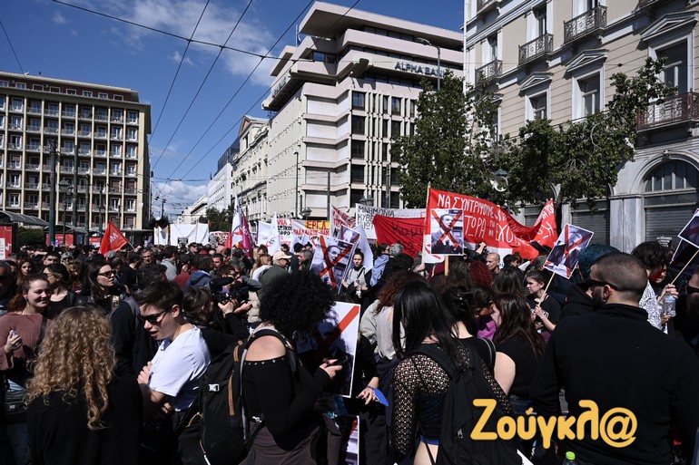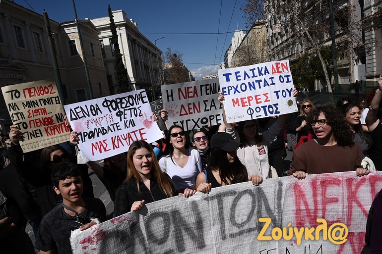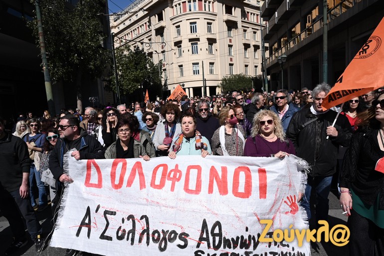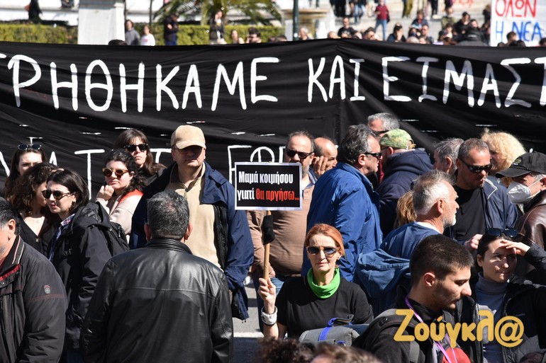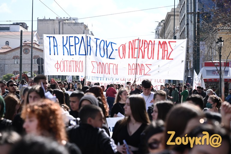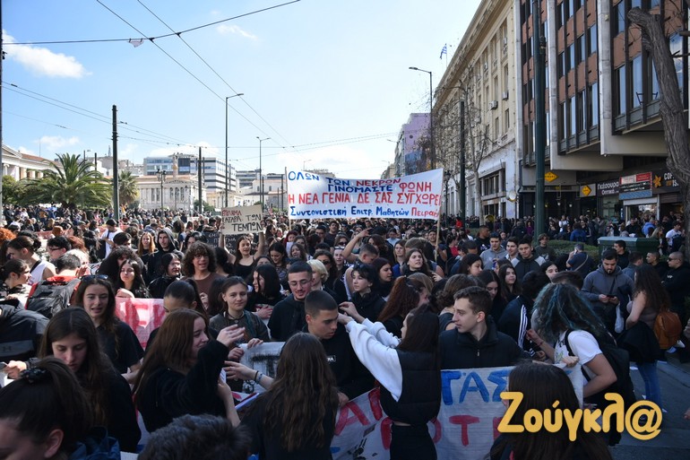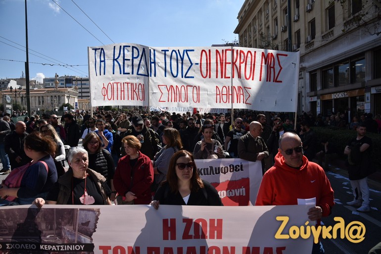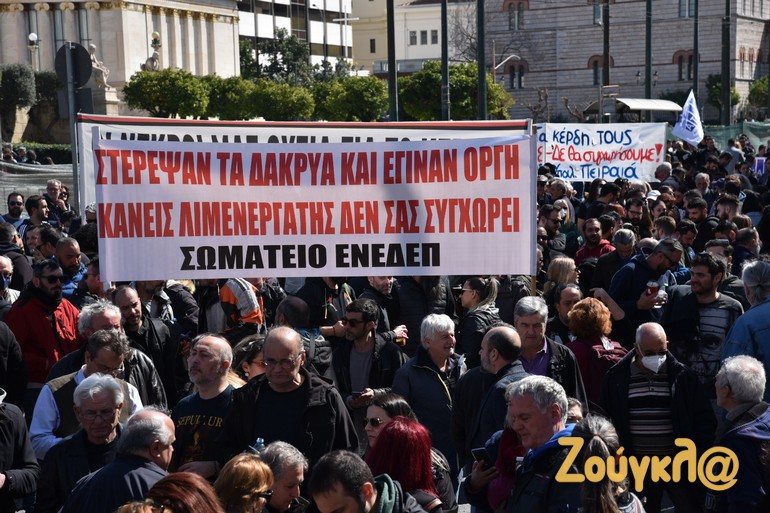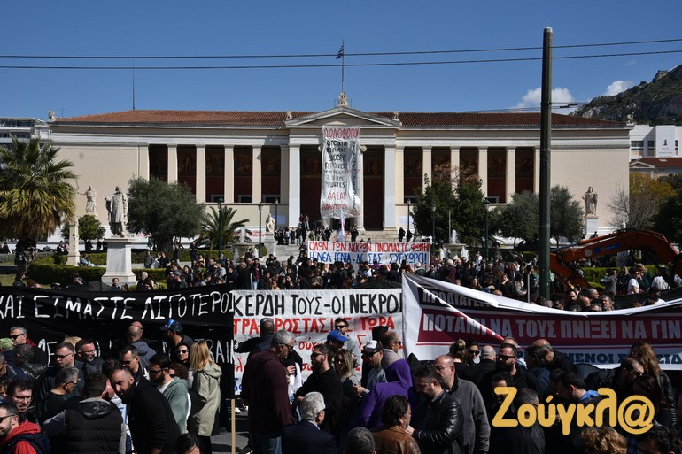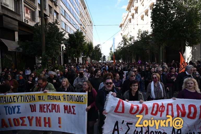 Δεκάδες χιλιάδες διαδηλωτές έχουν συγκεντρωθεί στο κέντρο της Αθήνας και με αφετηρία τα Προπύλαια πραγματοποιούν πορεία προς τη Βουλή διαμαρτυρόμενοι για τη τραγωδία στα Τέμπη.