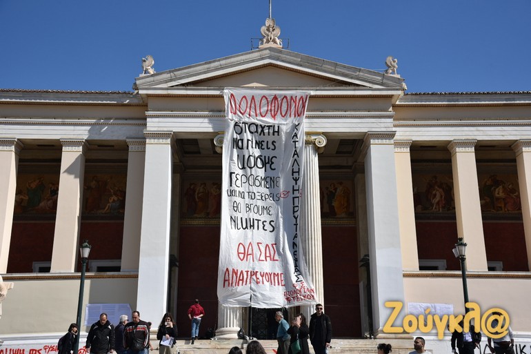 Την ίδια ώρα, υπό κατάληψη βρίσκεται η Πρυτανεία του ΕΚΠΑ. Νωρίτερα τα επεισόδια είχαν επεκταθεί στα Προπύλαια του Πανεπιστημίου.