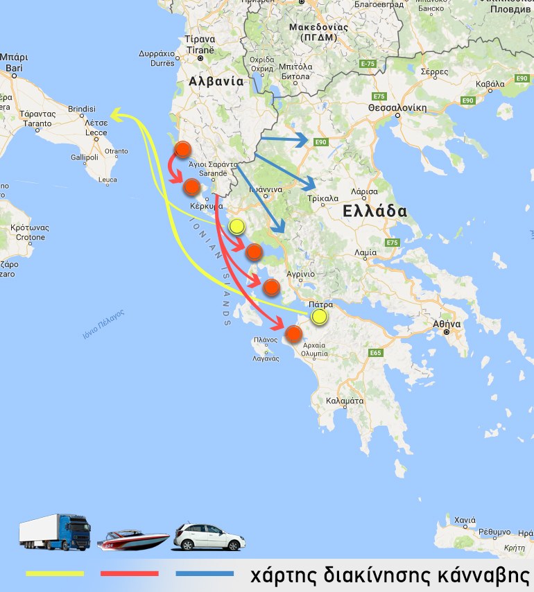 «Σχετικά με τη διακίνηση της ουσίας, από τις συλλήψεις που έχουν γίνει διαπιστώνεται ότι το πάνω χέρι έχουν Αλβανικά κυκλώματα», επισημαίνει ο κος Παναγιωτόπουλος. «Επίσης ένα νησί στο οποίο έχουμε παρατηρήσει την εισαγωγή μεγάλων ποσοτήτων είναι η Ζάκυνθος», προσθέτει.