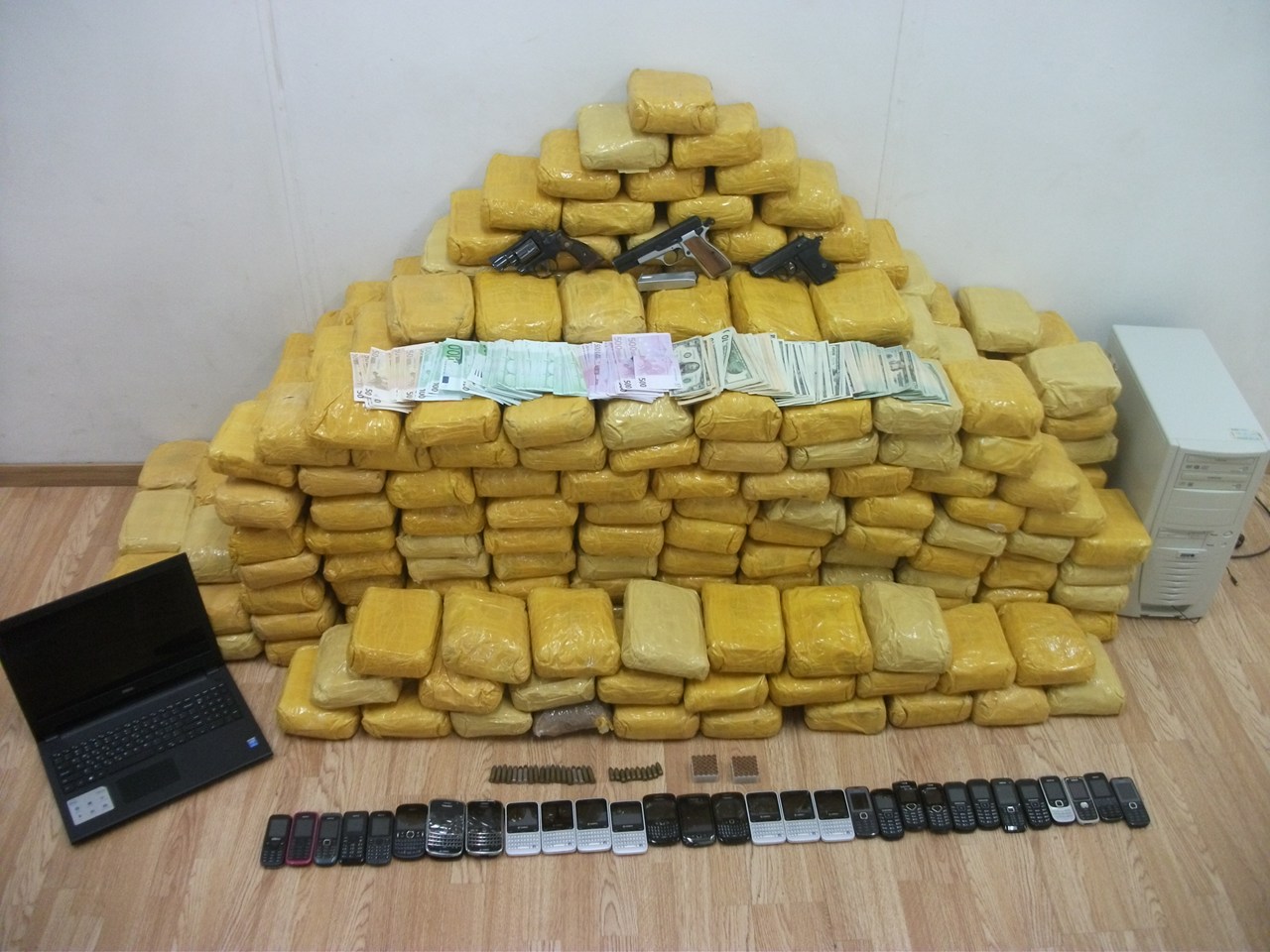 (Υπόθεση σε αποθηκευτικό χώρο στις Αφίδνες Αττικής, συνελήφθησαν επτά Έλληνες, ενώ κατασχέθηκαν 1.669.209,5 γραμμάρια ακατέργαστης κάνναβης. Οι συλληφθέντες ανήκαν σε εγκληματική οργάνωση η οποία δραστηριοποιούνταν στην αποθήκευση, συσκευασία, τυποποίηση και μεταφορά με φορτηγά οχήματα (διεθνών μεταφορών) μεγάλων ποσοτήτων ακατέργαστης κάνναβης σε χώρες της Δυτικής Ευρώπης, προερχόμενων από Αλβανία)