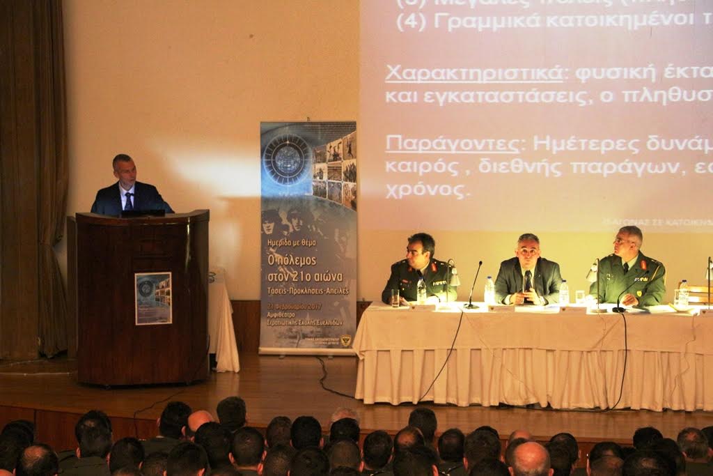 Πραγματοποιήθηκε την Τρίτη 21 Φεβρουαρίου 2017, στο αμφιθέατρο “Υποστράτηγος Αλέξανδρος Ξηρός” της Στρατιωτικής Σχολής Ευελπίδων, ημερίδα με θέμα «Ο Πόλεμος στον 21ο Αιώνα – Τάσεις – Προκλήσεις – Απειλές».