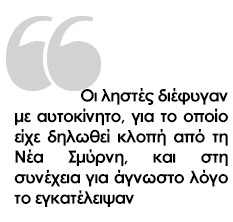 Να σημειωθεί ότι για το συγκεκριμένο Ι.Χ. είχε δηλωθεί κλοπή από τη Νέα Σμύρνη στις 10 Ιουνίου.
