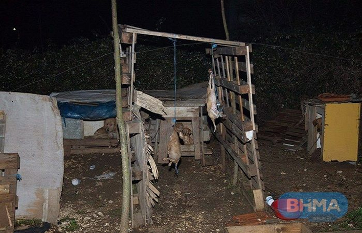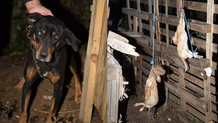Κάτοικοι της περιοχής εντόπισαν δύο κουτάβια απαγχονισμένα, να κρέμονται από τις ξύλινες παλέτες που ουσιαστικά αποτελούσαν το σπίτι τους. Η μητέρα των κουταβιών, που ήταν αλυσοδεμένη κοντά τους, έχει επίσης κακοποιηθεί και από τα θολά της μάτια φαίνεται πως έγινε προσπάθεια τύφλωσής της. Το αν τα άτυχα τετράποδα σκοτώθηκαν με άλλο τρόπο και στη συνέχεια κρεμάστηκαν από τον δράστη, είναι κάτι που προς το παρόν δε μπορεί να απαντηθεί.