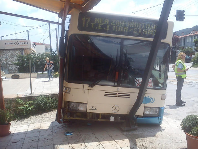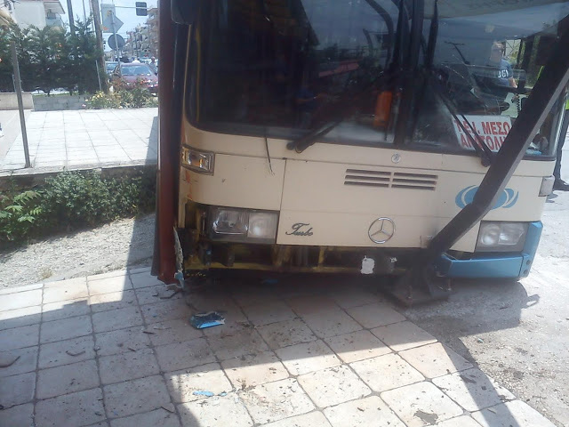 Το αστικό λεωφορείο σταμάτησε επάνω σε μια κολόνα. Δεν υπήρξε κάποιος τραυματισμός.