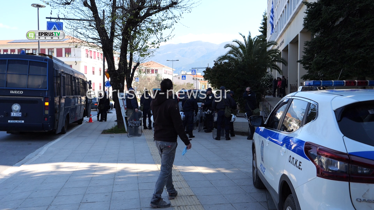 Ισχυρή ήταν η δύναμη της αστυνομίας με άνδρες των ΜΑΤ να βρίσκονται από το πρωί έξω από το Δικαστικό Μέγαρο Ιωαννίνων.