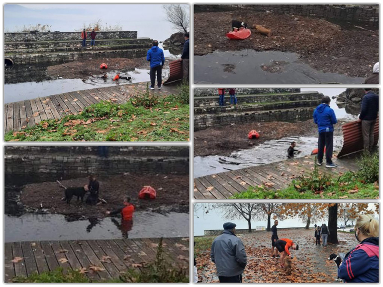 Δύο αδέσποτοι σκύλοι είχαν πέσει μέσα στο λιμάνι της “Σκάλας “στα Γιάννενα και δεν μπορούσαν να βγουν. Ευτυχώς, η έγκαιρη παρέμβαση δυο δρομέων , που έκαναν την προπόνηση τους στην παραλίμνιο περιοχή, τους έσωσε από τα χειρότερα.