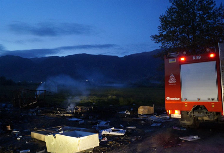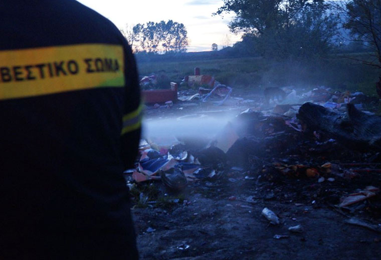 Οι πυροσβέστες φτάνοντας έκπληκτοι διαπίστωσαν ότι οι ομάδες των ρομά είχαν εγκαταλείψει τον καταυλισμό.