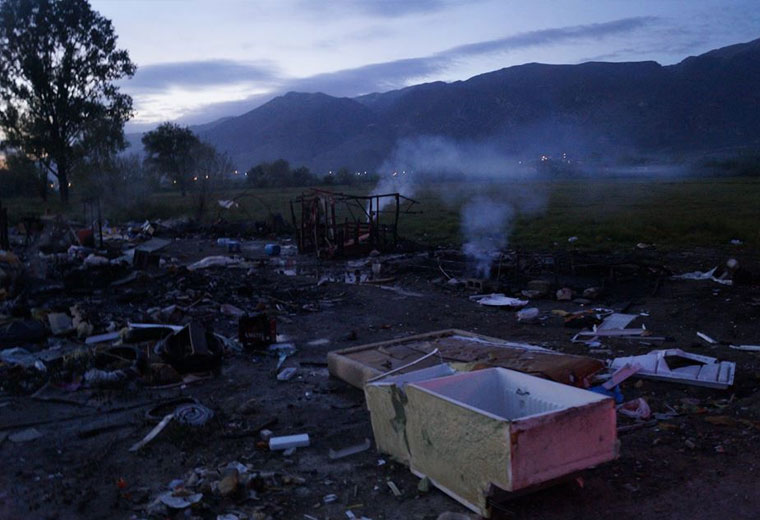 Φεύγοντας έβαλαν φωτιά, με αποτέλεσμα να καταστραφούν ολοσχερώς οι δεκάδες παράγκες που είχαν στήσει στην περιοχή.