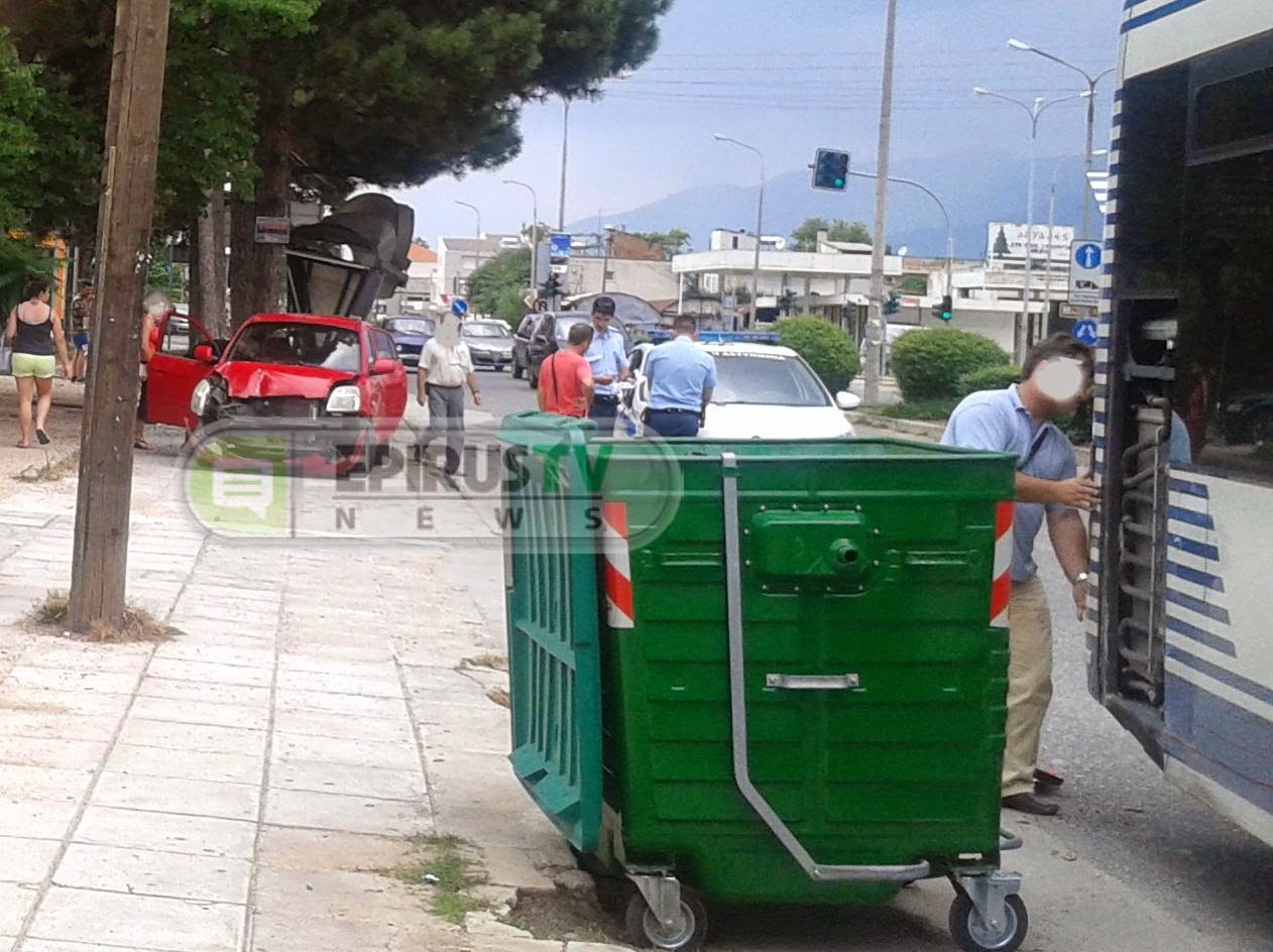 Από θαύμα δεν θρηνήσαμε θύματα σήμερα στην περιοχή Λιμνοπούλα στα Ιωάννινα, όταν μετά από σύγκρουση αστικού λεωφορείου με διερχόμενο Ι.Χ. επί της 8ης Μεραρχίας, το αυτοκίνητο πήρε παραμάζωμα τη στάση που υπάρχει έξω ακριβώς από το 5ο Γενικό Λύκειο.