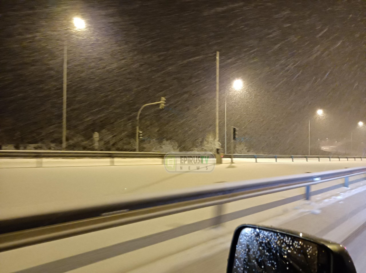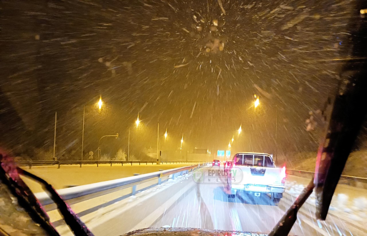 Κατά τόπους έπεφτε χιονόνερο ενώ σφοδρή χιονόπτωση εκδηλώθηκε το βράδυ της Τετάρτης στην Εγνατία Οδό, στο ύψος του κόμβου Δωδώνης. Το χιόνι που έπεφτε ήταν τόσο πυκνό που μέσα σε λίγα λεπτά παρατηρήθηκε χιονόστρωση.