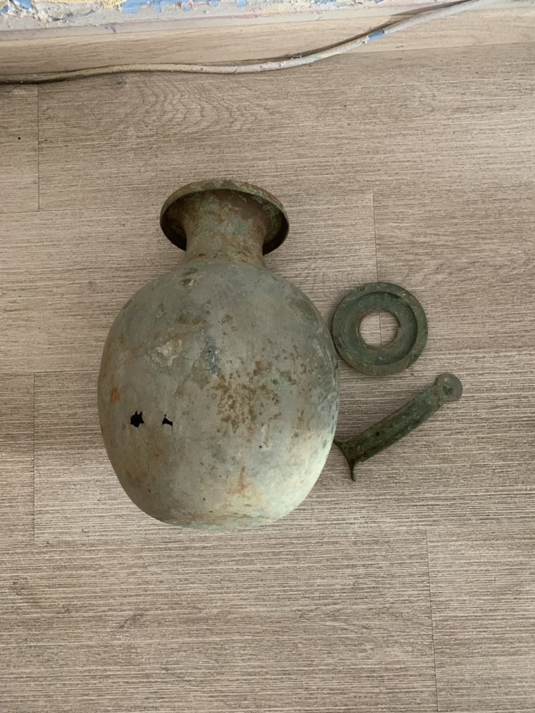 -χάλκινη λαβή και δισκοειδής βάση, μέρη της ως άνω χάλκινης υδρίας.