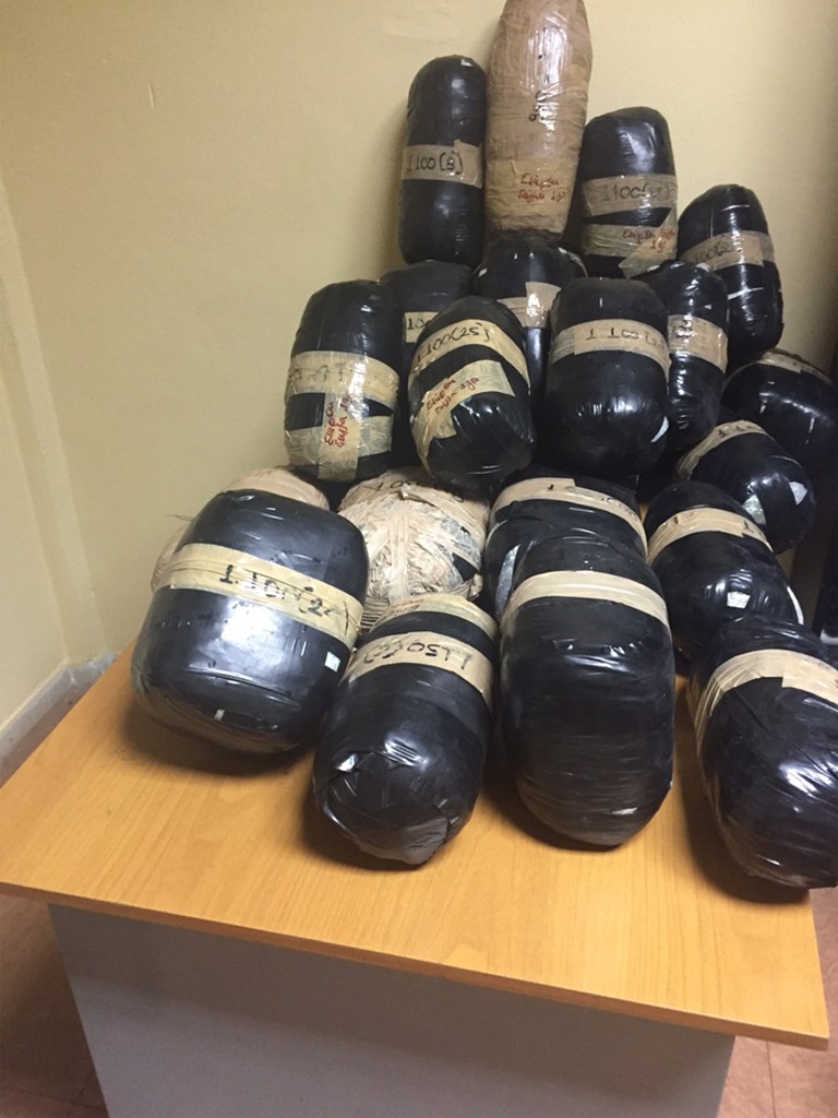 Ειδικότερα, στο πλαίσιο διερεύνησης υπόθεσης διακίνησης ναρκωτικών οργανώθηκε διακριτική παρακολούθηση, κατά την οποία χθες το μεσημέρι στη Λάβδανη, εντοπίστηκε ο 31χρονος να παραλαμβάνει από εγκαταλελειμμένο σπίτι και να μεταφέρει πεζός, δύο ταξιδιωτικούς σάκους, που περιείχαν 30 δέματα με ακατέργαστη κάνναβη, βάρους 32.720 γραμμαρίων.