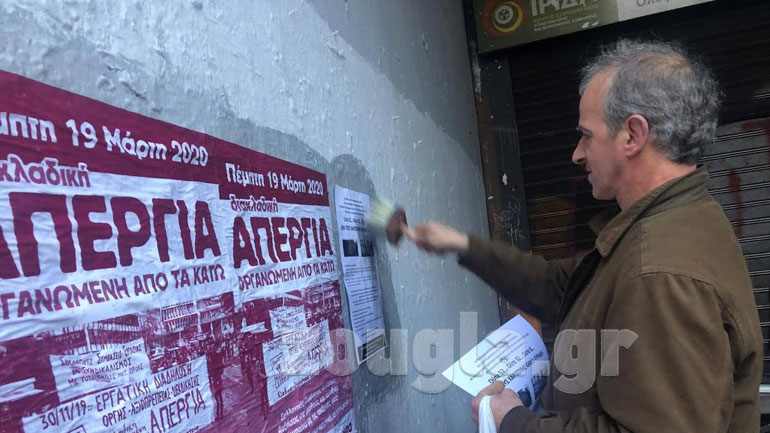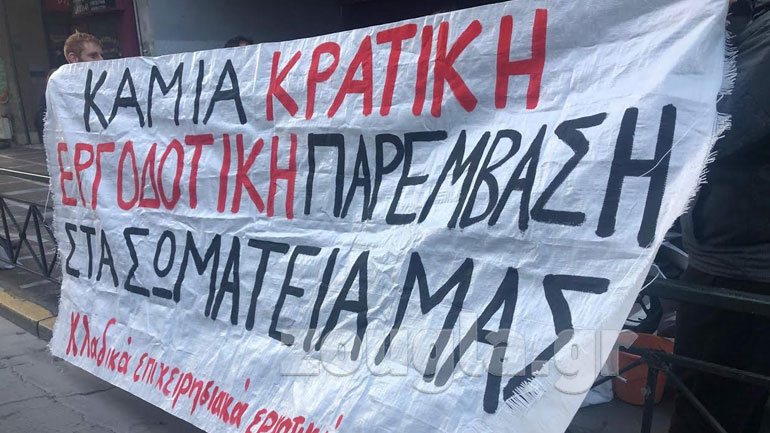 Μέλη πρωτοβάθμιων σωματείων πραγματοποίησαν νωρίς το πρωί συγκέντρωση έξω από το Υπουργείο Εργασίας, προκειμένου να διαμαρτυρηθούν για την προώθηση διάταξης για το Μητρώο Πραγματικών Δικαιούχων.