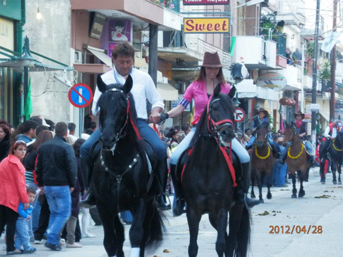 Τέλος ακολούθησε η επίδειξη δεξιοτεχνίας από εκπαιδευμένα άλογα και ιππείς στον πεζόδρομο της Άγιας Σοφίας, όπου στήθηκε ειδικά διαμορφωμένη αρένα! Φέτος συμμετείχαν συνολικά 200 άλογα.
