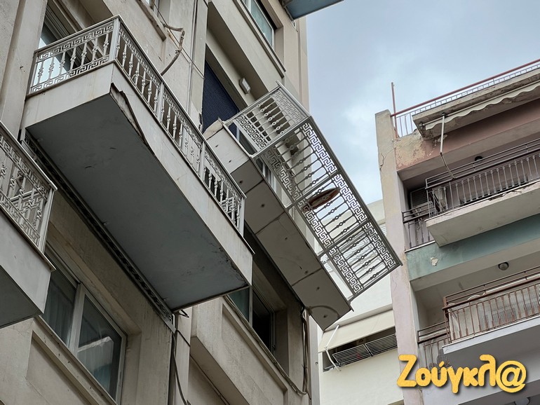 Όπως φαίνεται από τις εικόνες, ο κίνδυνος της κατάρρευσης είναι άμεσος καθώς το μπαλκόνι έχει πάρει κλίση σχεδόν 90 μοιρών.