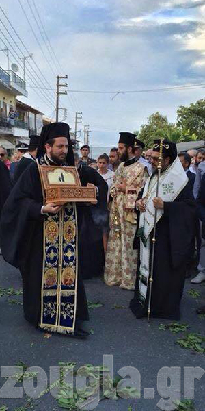 Τα λείψανα υποδέχθηκαν στην κεντρική πλατεία ο Μητροπολίτης Χρυσόστομος, καθώς και οι τοπικές αρχές και ορισμένοι πιστοί.