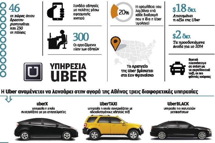 Παρά τον αποκλεισμό της όμως από πολλές χώρες, η Uber αποτιμάται προς 40 δισ. δολάρια, ύστερα από τον τελευταίο γύρο συγκέντρωσης χρηματοδότησης, κατά τον οποίο η αραβική Qatar Investment Authority -γνωστή στην Ελλάδα από τη συμμετοχή της στον διαγωνισμό για το Ελληνικό- μπήκε στο μετοχικό κεφάλαιο της εταιρείας.