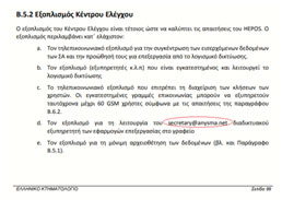 στη σελίδα 99 διαβάσαμε ότι «Ο εξοπλισμός του Κέντρου Ελέγχου είναι τέτοιος, ώστε να καλύπτει τις απαιτήσεις του HEPOS. Ο εξοπλισμός περιλαμβάνει κατ’ ελάχιστον… d. Τον εξοπλισμό για τη λειτουργία του secretary@anysma.net διαδικτυακού εξυπηρετητή των εφαρμογών επεξεργασίας στο γραφείο…».