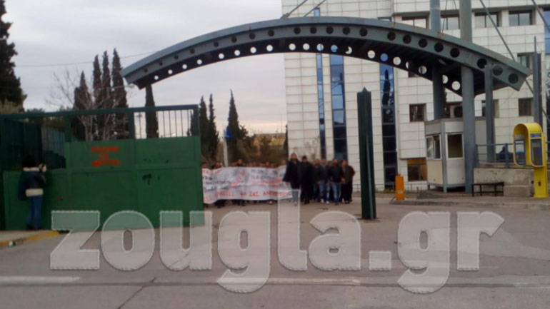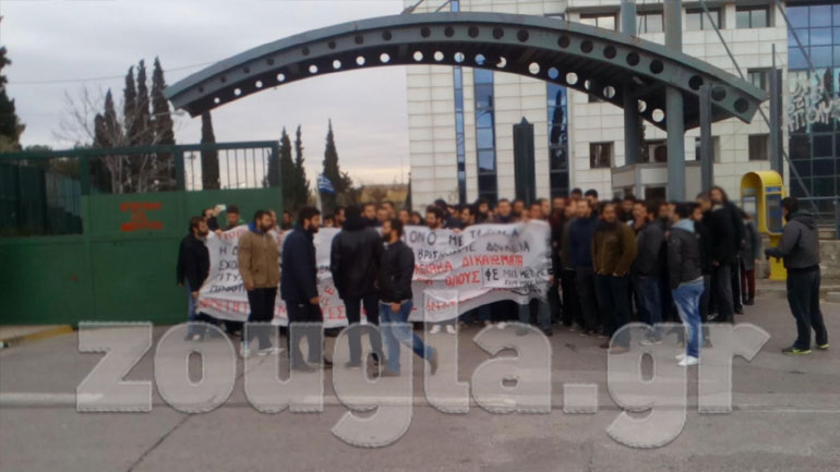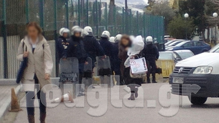 Αφού επιχείρησαν αν εισέλθουν στο κτήριο από την δεύτερη είσοδο, άνδρες των ΜΑΤ εμφανίστηκαν μπροστά τους με αποτέλεσμα να σημειωθεί ένταση.