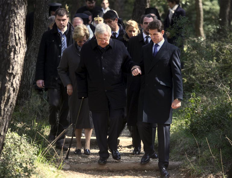 Ο Κωνσταντίνος έφτασε στους τάφους των γονιών του υποβασταζόμενος από τον γιο του Παύλο.