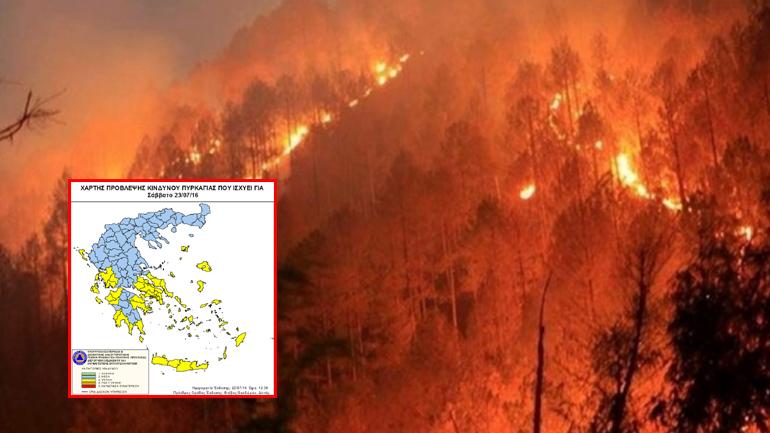 Σύμφωνα με τον χάρτη που εκδίδει η Γενική Γραμματεία Πολιτικής Προστασίας, υπάρχει υψηλός κίνδυνος εκδήλωσης φωτιάς...