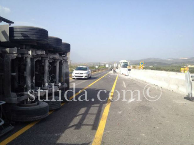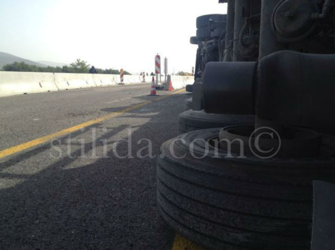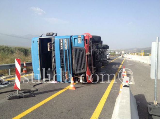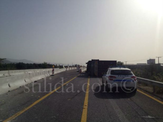 Μία νταλίκα εξετράπη της πορείας της, το πρωί της Τρίτης, στην Εθνική Οδό Αθηνών – Θεσσαλονίκης, λίγο πριν τη Στυλίδα, σε σημείο όπου εκτελούνται εργασίες της ΠΑΘΕ.