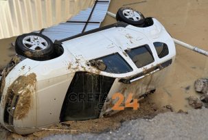 Σύμφωνα με πληροφορίες του creta24, στο οικόπεδο όπου είχε παρκάρει το αυτοκίνητό του ο ανυποψίαστος οδηγός, εκτελούνται εργασίες θεμελίωσης και οι απαραίτητες «τομές» φτάνουν μέχρι και τα όρια του δρόμου. Το οικόπεδο ήταν περιφραγμένο, και για κάποιες ώρες το αυτοκίνητο παρέμεινε κολλημένο πάνω στην περίφραξη από λαμαρίνες.