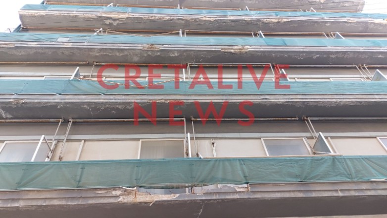 Στο Ηράκλειο, στην οδό Σμύρνης έπεσε τμήμα μπαλκονιού επί του οδοστρώματος.