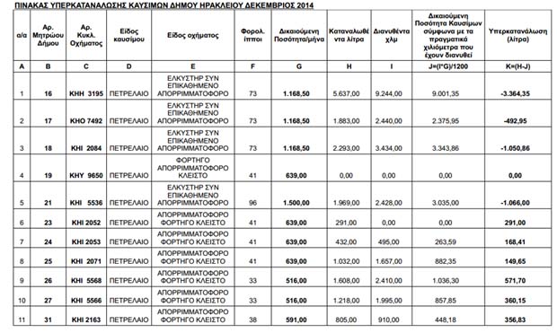Μάλιστα, από τα χιλιόμετρα που διανύθηκαν, η υπηρεσία δικαιολογεί κατανάλωση άλλων 3.364,35 λίτρων, φτάνοντας έτσι από το όριο των 1.168,5 λίτρων, να δικαιολογείται τελικά ποσότητα 9.0001,35 λίτρων.