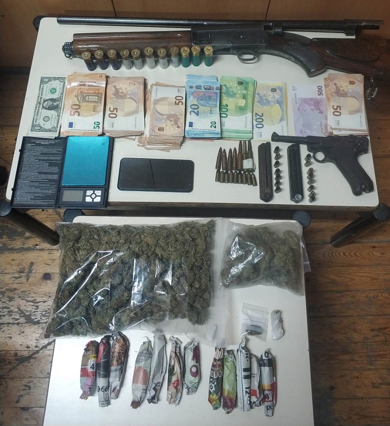 Εκεί βρήκαν και κατάσχεσαν 326 γραμμάρια χασίς, μικροποσότητα κοκαΐνης, μία ηλεκτρονική ζυγαριά ακριβείας, ένα πιστόλι, ένα κυνηγετικό όπλο, δύο γεμιστήρες πιστολιού, 42 σφαίρες ένα κινητό τηλέφωνο καθώς και 20.425 ευρώ και 347 δολάρια. Η προανάκριση διενεργείται από το Τμήμα Δίωξης Ναρκωτικών της Υποδιεύθυνσης Ασφάλειας Ρεθύμνου.