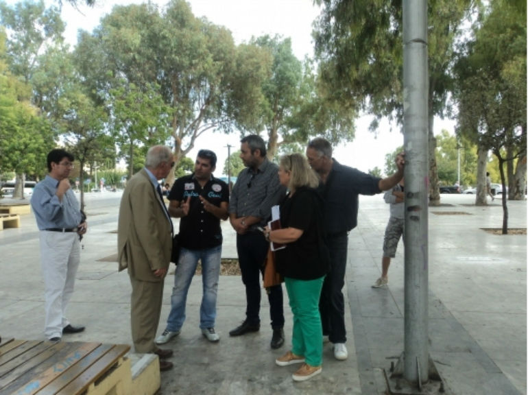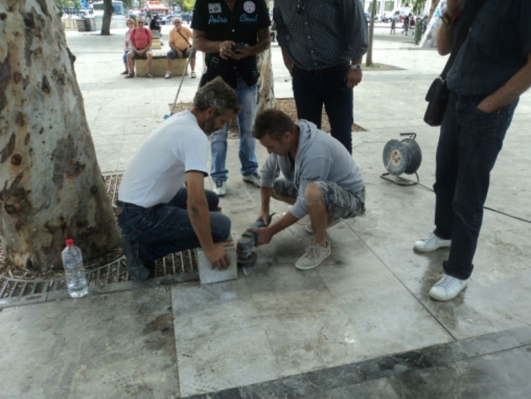 Δοκιμαστικές εργασίες για την αντιμετώπιση της ολισθηρότητας του δαπέδου της Πλατείας Ελευθερίας πραγματοποιήθηκαν την Τετάρτη από το συνεργείο της Διεύθυνσης Συντήρησης και Αυτεπιστασίας της Τεχνικής Υπηρεσίας του Δήμου Ηρακλείου.