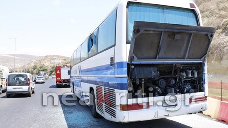 Στις φλόγες τυλίχθηκε λεωφορείο ενώ ήταν εν κινήσει στην εθνική οδό Ηρακλείου – Αγίου Νικολάου, στο ύψος του αεροδρομίου Ηρακλείου, χωρίς ευτυχώς να τραυματιστεί κανείς. Έξι άτομα μεταφέρθηκαν προληπτικά στο νοσοκομείο, λόγω αναπνευστικών προβλημάτων, αλλά δεν διατρέχουν κίνδυνο.