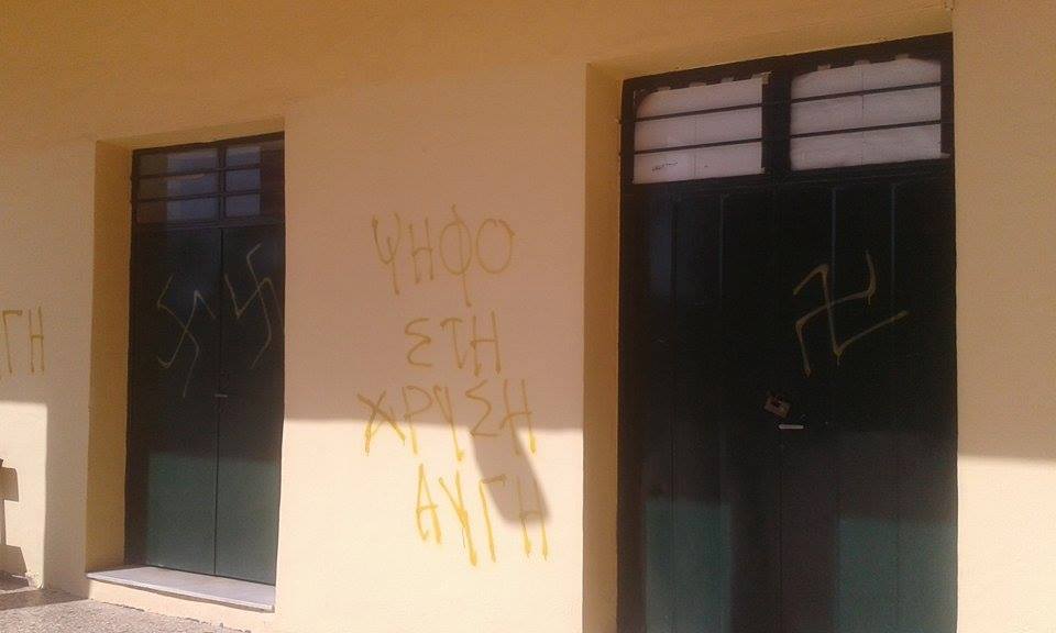 Απίστευτες εικόνες ντροπής αντίκρισαν το πρωί της Κυριακής κάτοικοι του Αρκαλοχωρίου Ηρακλείου, καθώς στους τοίχους του γυμνασίου της περιοχής όπου πήγαν να ψηφίσουν ήταν γραμμένα ρατσιστικά συνθήματα κατά των αλλοδαπών και υπέρ της Χρυσής Αυγής.
