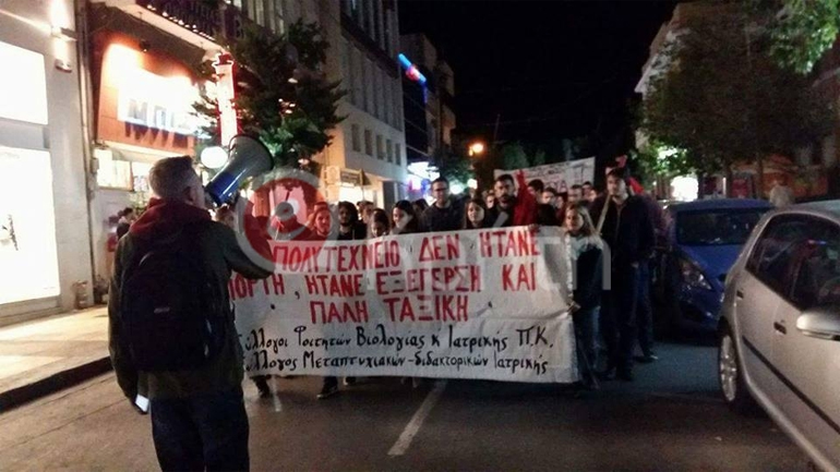 Ολοκληρώθηκε λίγο πριν τις 21:00 στο Ηράκλειο, η πορεία για την 43η επέτειο του Πολυτεχνείου, στην οποία συμμετείχαν δάσκαλοι, καθηγητές, φορείς και συλλογικότητες.