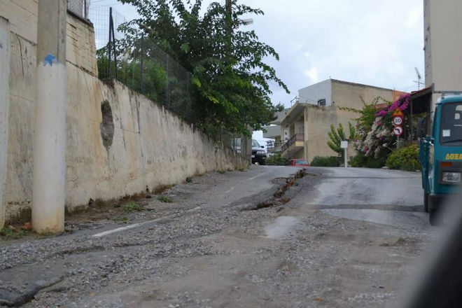 Μια δυνατή νεροποντή ήταν αρκετή για να κάνει το δρόμο, μπροστά από το Δημοτικό Σχολείο, στο Αρκαλοχώρι Ηρακλείου, να ανοίξει στα δύο.