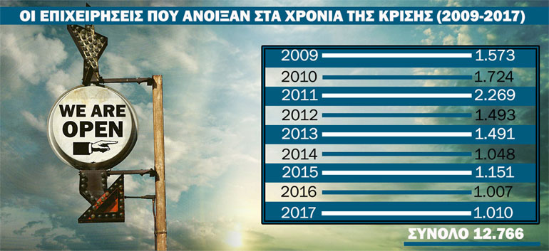 Σύμφωνα με τα επίσημα στοιχεία, από το 2009 έως και το 2017 έχουν ανοίξει συνολικά 12.766 επιχειρήσεις γεγονός που αποδεικνύει ότι τα «λουκέτα» ήταν περισσότερα συνολικά κατά 1.134.