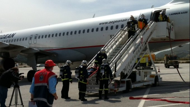 Το σενάριο της άσκησης περιλαμβάνει φωτιά σε αεροσκάφος, αφού θα επιχειρήσει λόγω προβλήματος αναγκαστική προσγείωση.