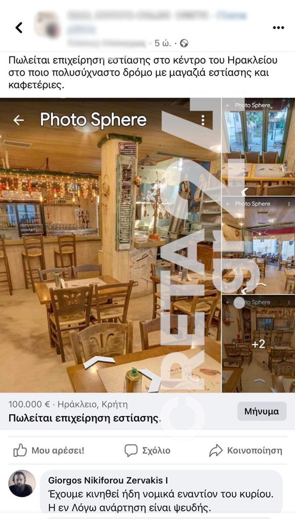 «Στον Εισαγγελέα σήμερα για τον “Λαθρομεσίτη” που “ανέβασε” στα κοινωνικά δίκτυα αγγελία πώλησης επιχείρησης στο Ηράκλειο, χωρίς να το γνωρίζουν οι ιδιοκτήτες.