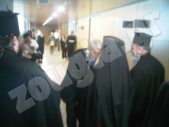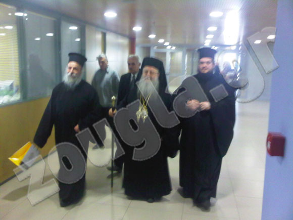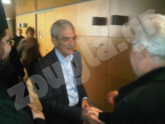 Στις 13:05, το Volvo του μητροπολίτη Άνθιμου στάθμευσε στην είσοδο του δημαρχείου. Συνοδευόμενος από τρία στελέχη της Μητρόπολης κι εξαιρετικά ευδιάθετος, κατευθύνθηκε προς τα ασανσέρ και ανέβηκε στον τρίτο όροφο, όπου βρίσκεται το γραφείο του δημάρχου.
