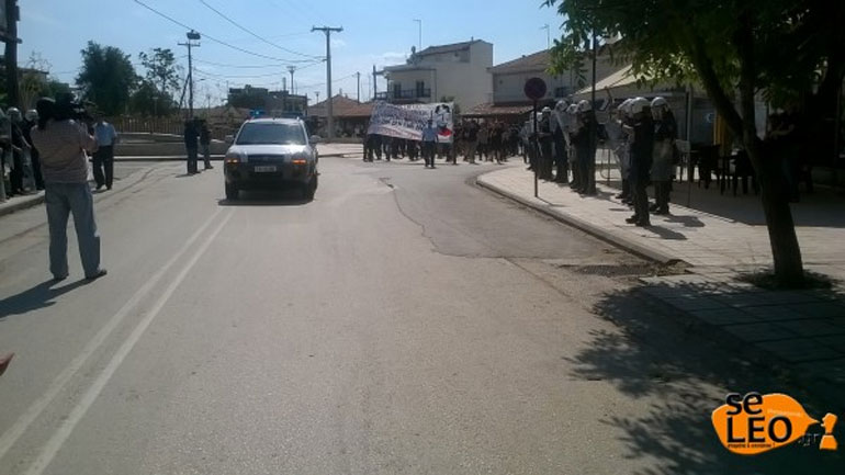 Περίπου 90 νέοι και νέες πραγματοποίησαν ειρηνική πορεία στον κεντρικό δρόμο του χωριού υπό τη διακριτική παρουσία σημαντικής αστυνομικής δύναμης και με κυρίαρχο σύνθημα την καταστροφή του φράχτη.
