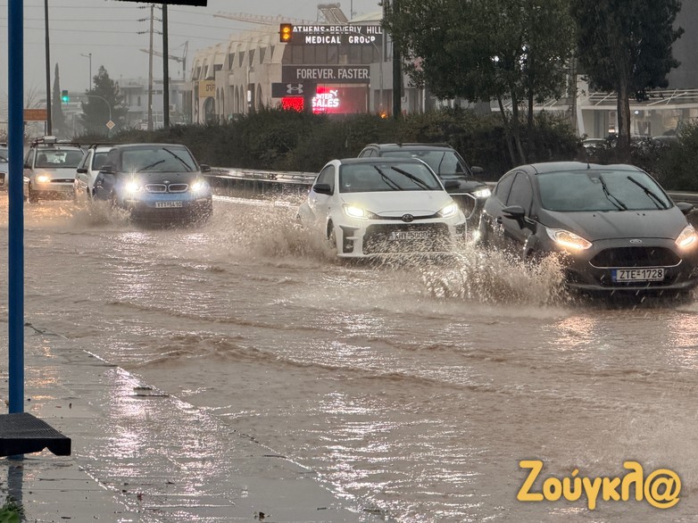 Παράλληλα τα νότια προάστια πλήττονται για ακόμη μια φορά με τη Λεωφόρο Βουλιαγμένης να ξεκινά σταδιακά να πλημμυρίζει και να γίνεται αδιαπέραστη.